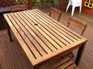 This table was sanded and Teak Oiled. It had truned grey and was covered in moss.