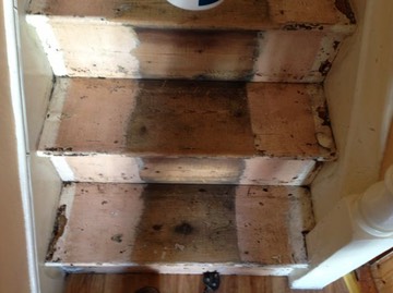This staircase was stripped and repaired before we repainted it. The customer wanted a carpet runner so the treads and risers needed to be painted.