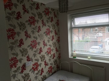 Feature Walls and patterned wallpaper hanging.