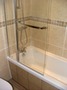 This bathroom was recently completed and provides an over bath thermostatic shower which is concealed in the wall. The bath panel is tiled to match the floor.